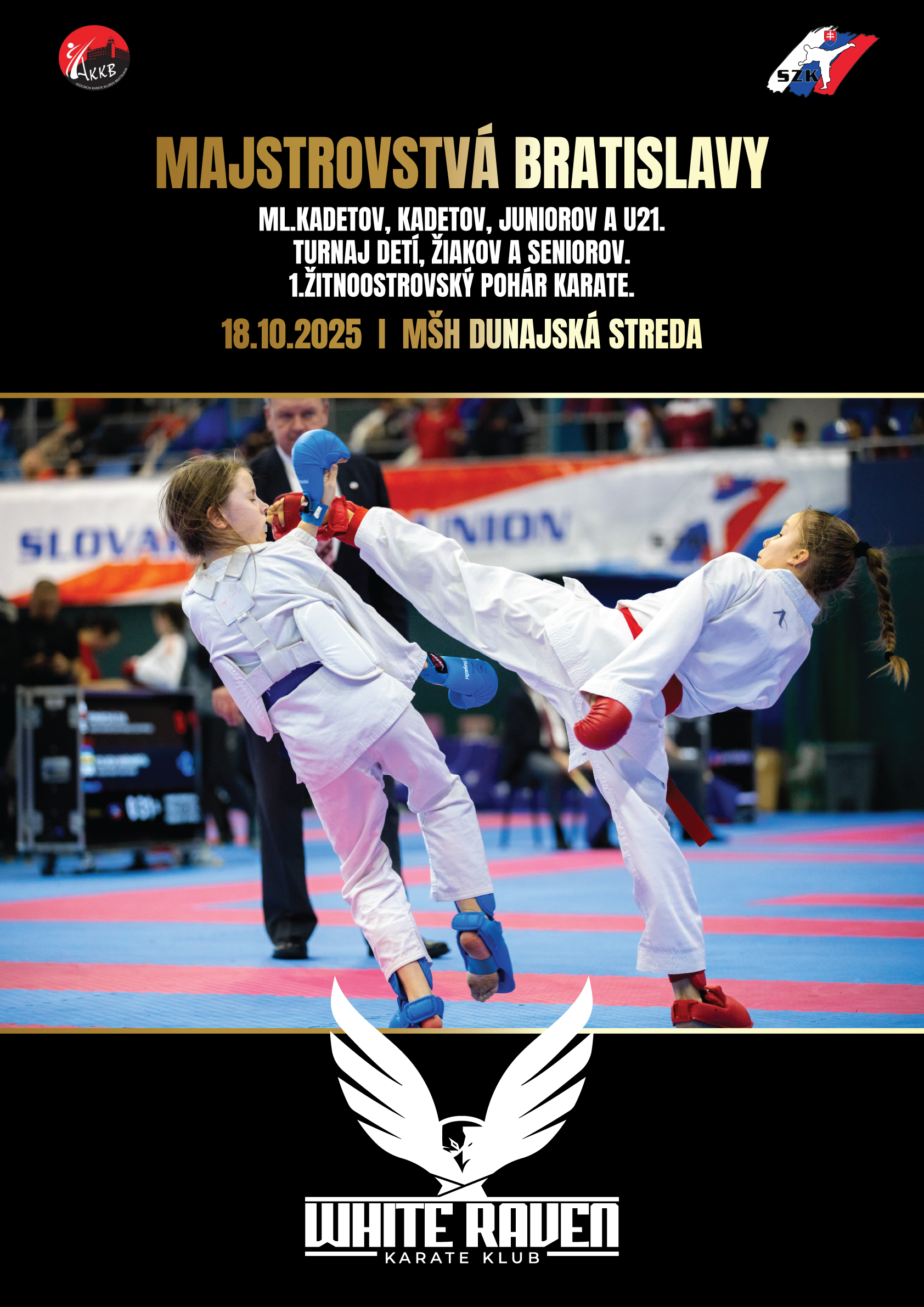 18.10.2025 - 1. kolo Bratislavského pohára v karate 2025. Majstrovstvá Bratislavy ml.kadetov, kadetov, juniorov, U21. Turnaj detí, žiakov a seniorov. 1. Žitnoostrovský pohár karate.