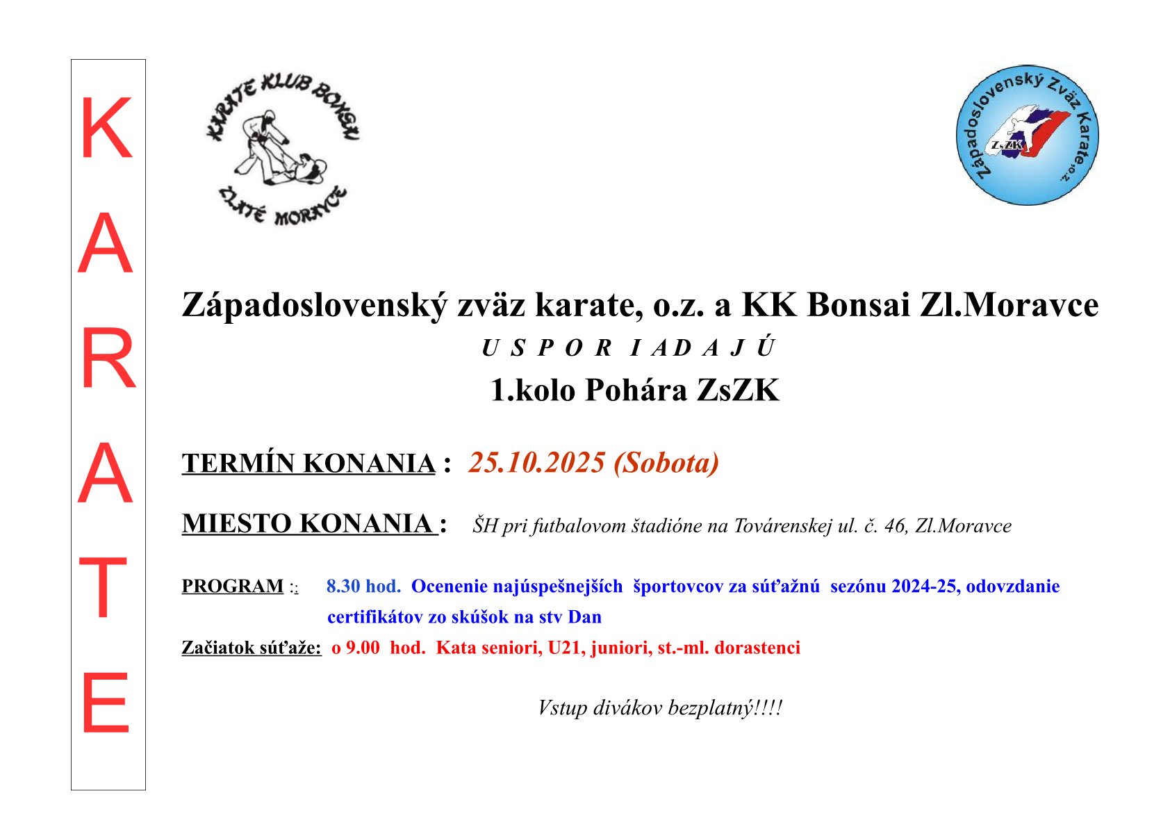 | Konto organizátora: | Západoslovenský zväz karate,o.z. |